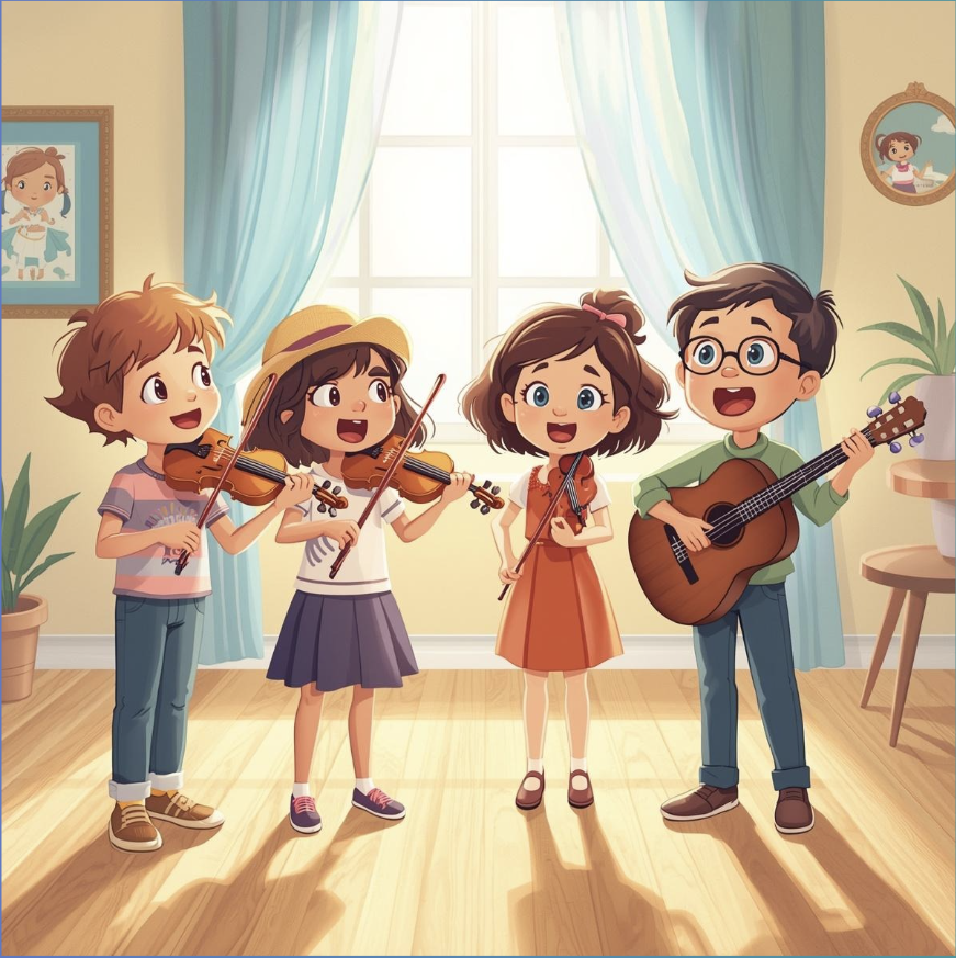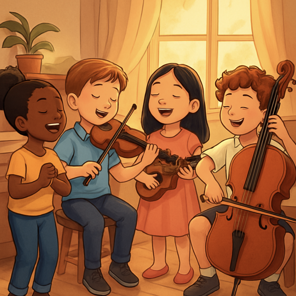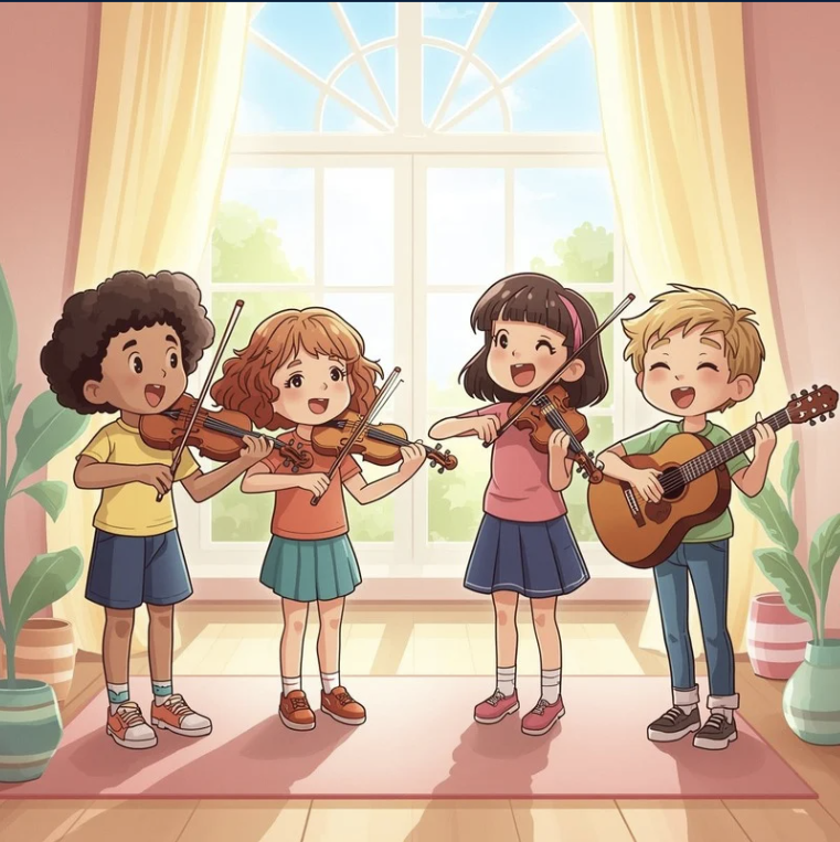 Spielerische Musik-Entdeckungsreise und Vorbereitung fürs Spielen der Saiteninstrumente in kleinen Gruppen